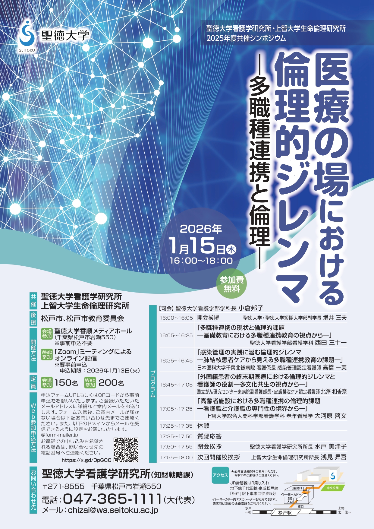 聖徳大学看護学研究所・上智大学生命倫理研究所 2025年度共催シンポジウム