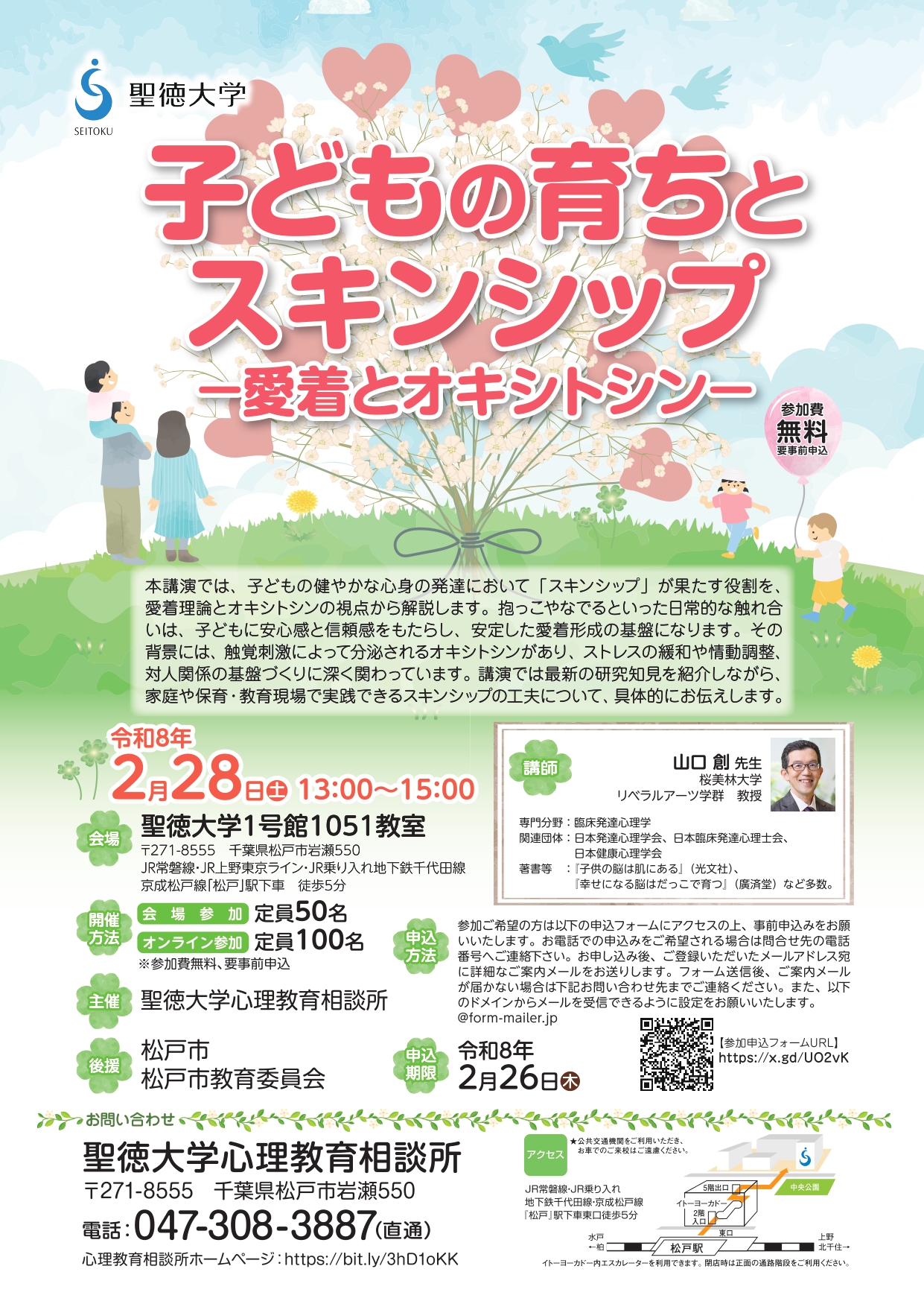 2/28(土) 聖徳大学心理教育相談所主催講演会「子どもの育ちとスキンシップ~愛着とオキシトシン~」