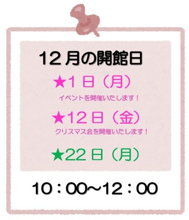 ・開館時間内であれば出入りが自由にできます。(必ずお子さまと一緒に外出してください。)