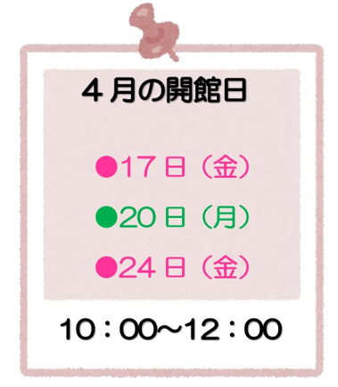 ・開館時間内であれば、出入りが自由にできます。必ずお子さまと一緒に外出してください。