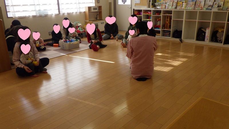 「いとまき」の手遊びや「あたま・かた・ひざ・ぽん」のリズム遊びをしました。