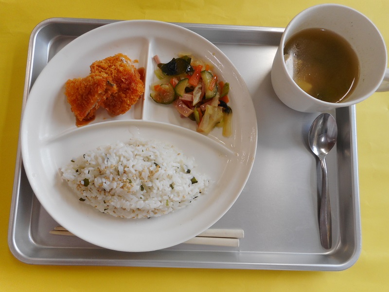 ・菜飯、アジフライ、和風サラダ、トン汁・・・エネルギー 400Kcal / たんぱく質 15.4g