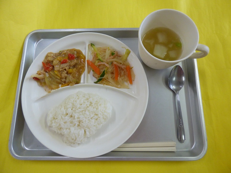 2022.10.08 ♡10月11日(火)~10月13日(木)の献立♡(写真付き) ♡10月11日(火) ・ご飯(ふりかけ)、鶏肉の西京焼き、かまぼこの胡麻和え、沢煮椀・・・エネルギー 370Kcal / たんぱく質 12.4g ♡10月12日(水) ・ご飯、回鍋肉、春雨サラダ、白菜スープ・・・エネルギー 375Kcal / たんぱく質 12.7g ♡10月13日(木) ・ナポリタン、ポテト、茹でキャベツのサラダ、カブのスープ、バナナ・・・エネルギー 390Kcal / たんぱく質 13.7g