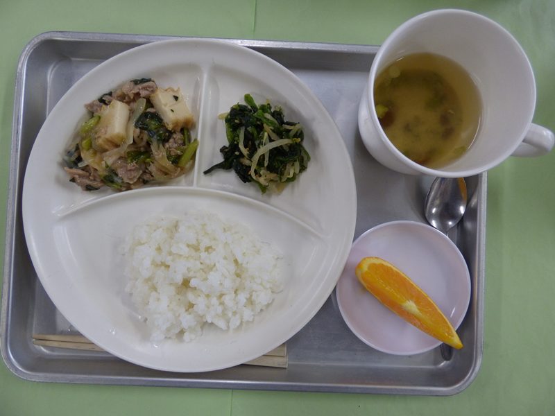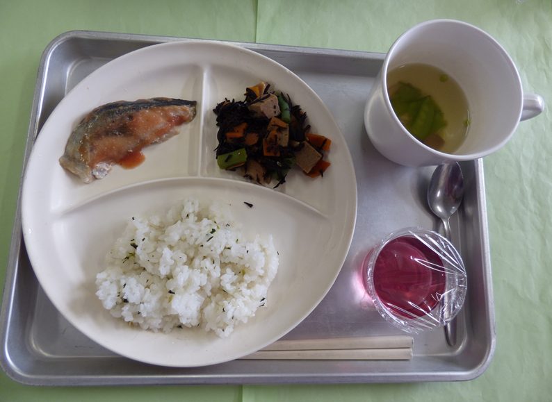 2025.11.21 11月25日(火)~27日(木) 写真付き ★25日 ・ごはん、なめこの味噌汁、豚肉の旨煮、ほうれん草の胡麻和え、オレンジ・・・エネルギー346㎉/タンパク質12.6g ★26日 ・ごはん、チンゲンサイの中華スープ、揚げ鶏の甘酢ねぎソース、中華風わかめサラダ、ピーチヨーグルト・・・エネルギー394㎉/タンパク質12.4g ★27日 ・なめし、きぬさやのすまし汁、あじの梅味噌焼き、高野豆腐とひじきの煮物、ぶどうゼリー・・・エネルギー322㎉/タンパク質14.9g