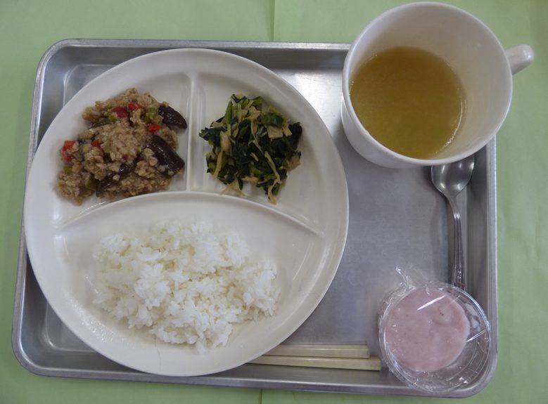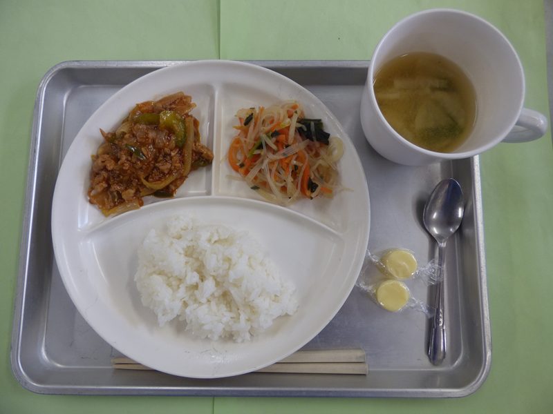 2025.09.22 9月22日(月)~25日(木) 写真付き ☆22日 ・ごはん、小松菜の味噌汁、豚肉のねぎ塩炒め、キャベツの胡麻和え、オレンジ・・・エネルギー347㎉/タンパク質12.4g ☆24日 ・ごはん、中華風コーンスープ、マーボー茄子、小松菜とえのきの中華和え、いちごフルーチェ・・・エネルギー384㎉/タンパク質13.7g ☆25日 ・ごはん、大根の味噌汁、ポークケチャップ、春雨の和風サラダ、キャンディーチーズ・・・エネルギー399㎉/タンパク質14.7g