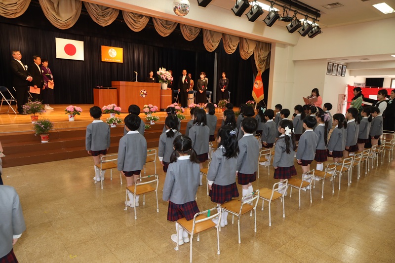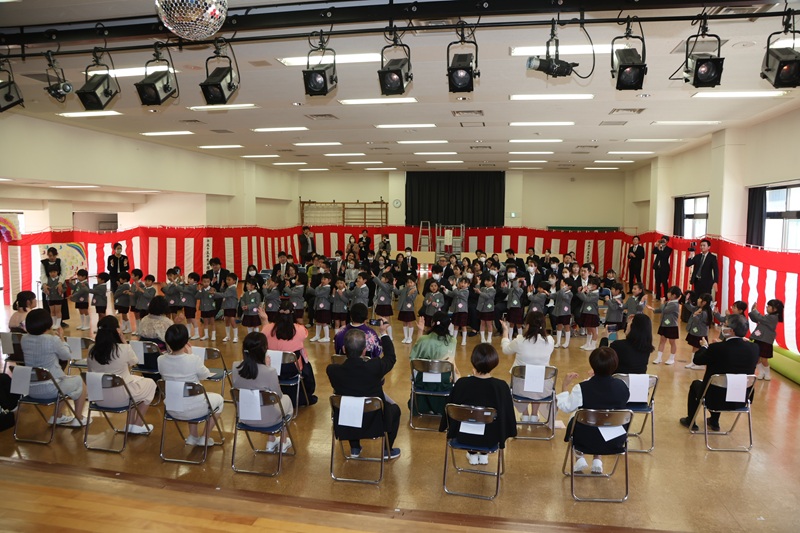 始まる前は「ちょっと緊張する」と言っていた子ども達でしたが、式が始まると真剣な表情で元気に行進して入場していました。