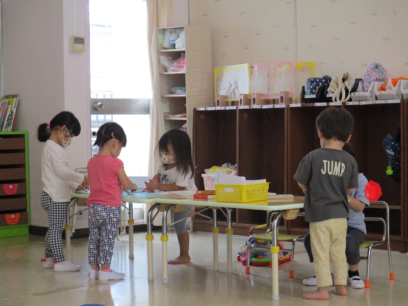 この日は、ぬり絵や粘土で遊ぶ姿がよく見られました。