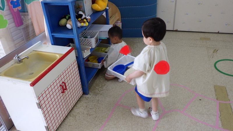 お片づけ頑張ってるよ!~ひまわり組(満三歳児保育)~