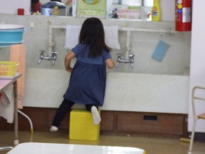 給食後は、みんなとゆったり過ごしたり、手を洗ったり、着替えたり、と様々ではありますが、「保育室」から飛び出すことなく過ごしていました。