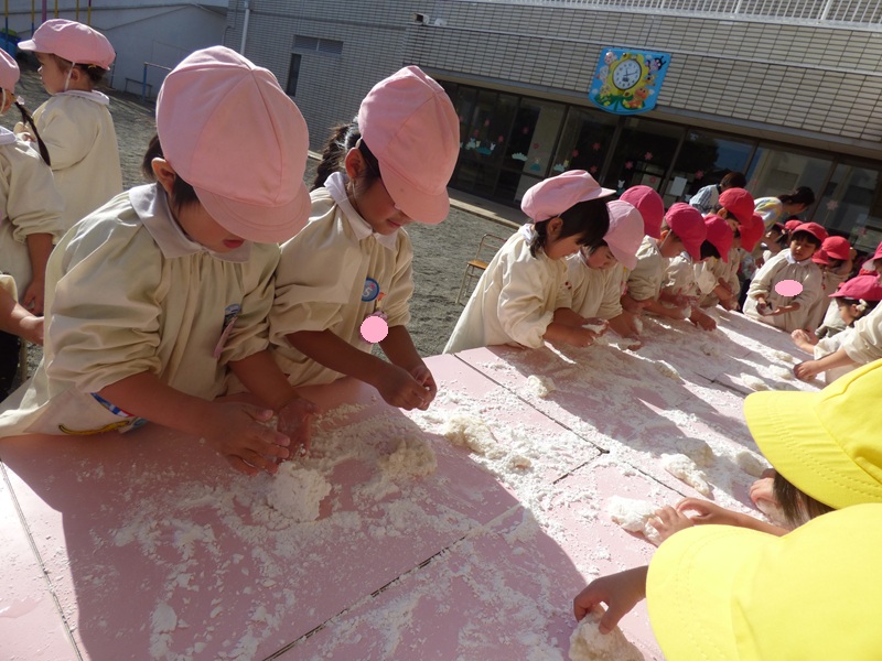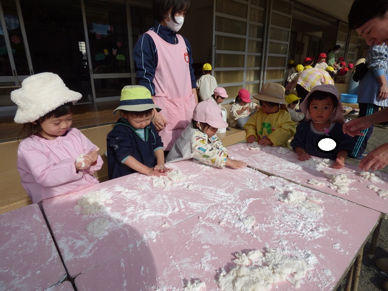 子ども達も、もちをついたり、実際に触ってこねたり、伸ばしたりしました。
