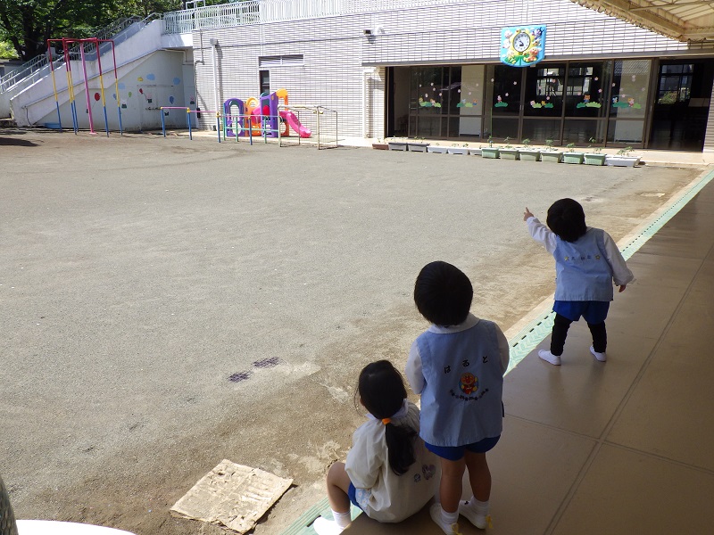 園庭では、好きな遊びを見つけて、元気いっぱい体を動かして遊んでいます。