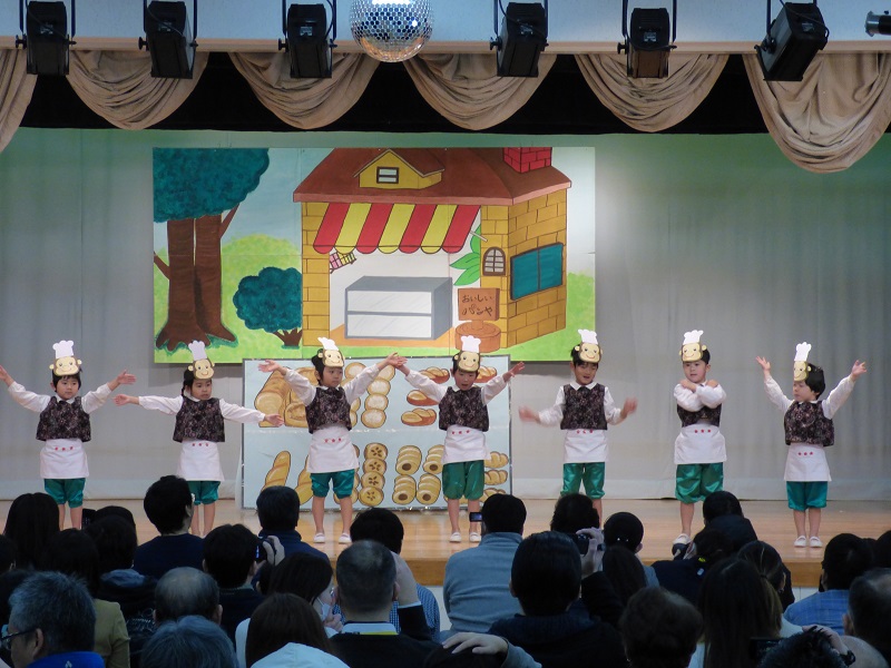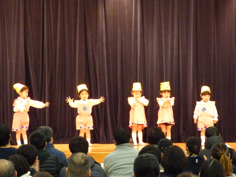 幕間で、週三日コース「ちゅうりっぷ組」の子ども達が、体操「勇気りんりん」を沢山のお客様の前で、ちょっと恥ずかしそうにしながらも動くことが出来ました。