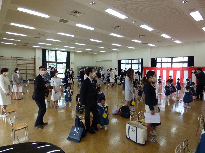 満三歳児は保護者の方と一緒に、年少組は一人ずつ座って式に参加しました。