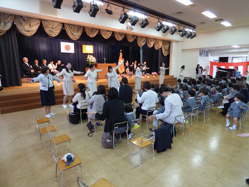 手遊びでは、子ども達の緊張も和らぎ、笑顔も見られ、また保護者の方も一緒に手遊びを楽しんで下さり、とてもアットホームな式となりました。