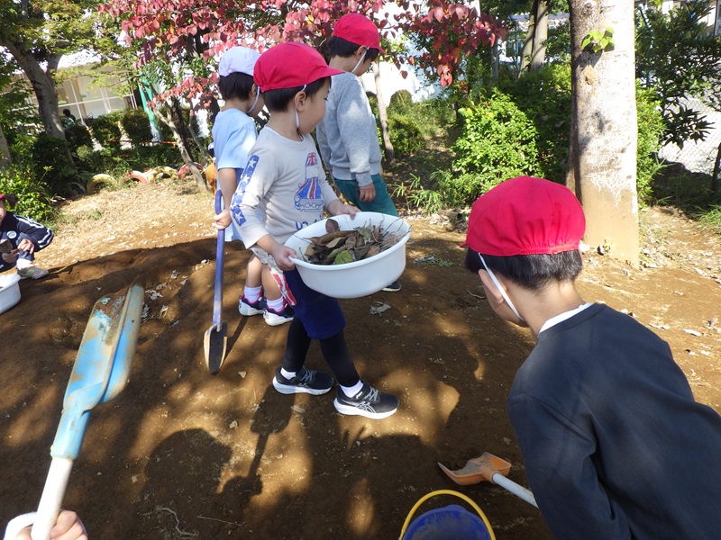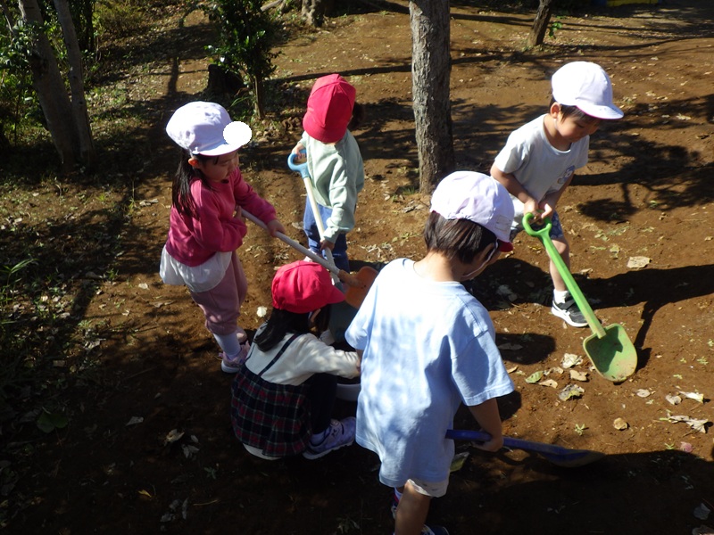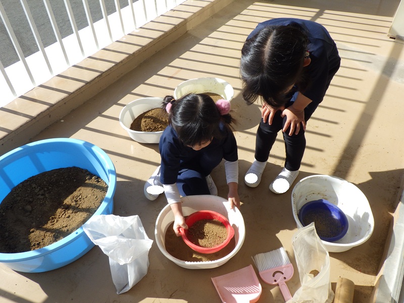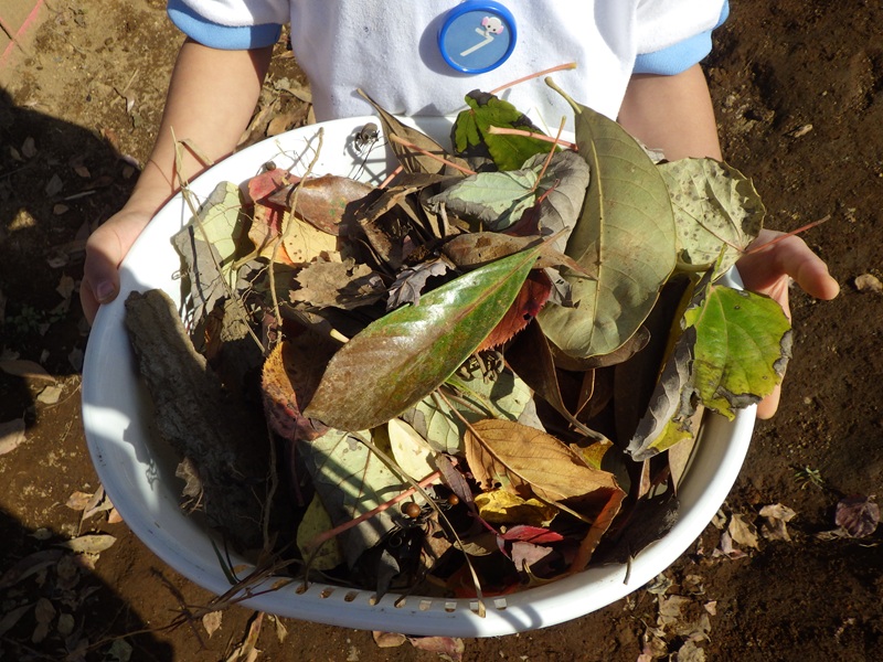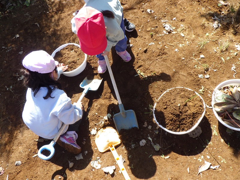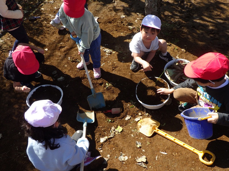 そして先日、園庭の築山周辺からみんなで土を集めました。