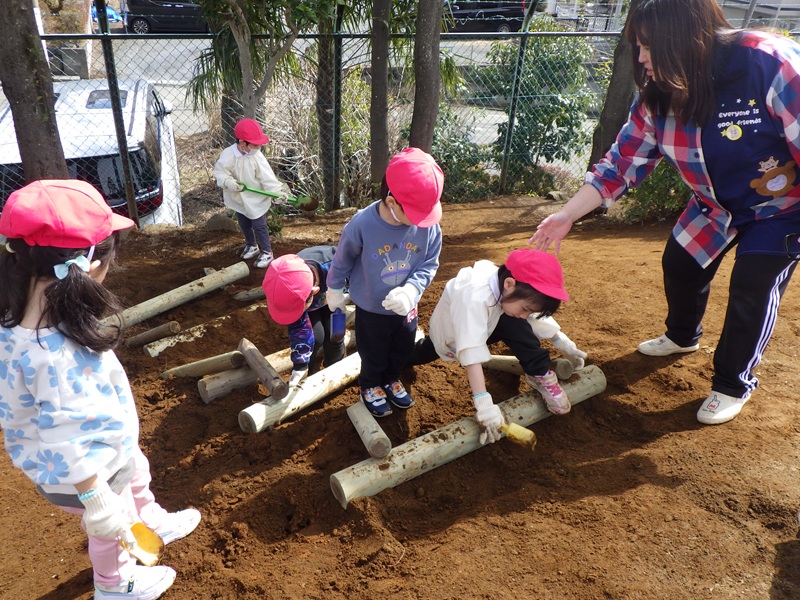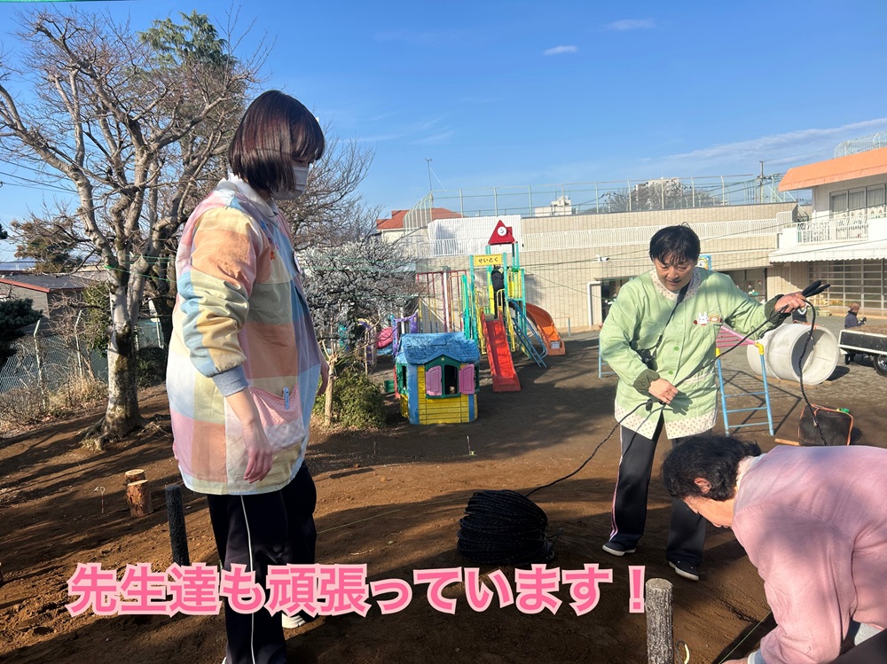 子ども達が安全に楽しく遊べるようにと細かいところまで先生達と相談しながら作業を進めてくださいました。