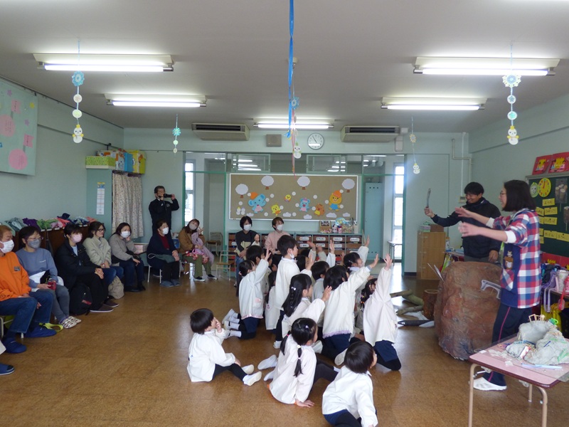 藤橋造園さんは、子ども達の話に優しく耳を傾けてくださり、子ども達の質問にもたくさん答えてくださいました。(お話に来てくださったお二人は本園の卒園生です!)