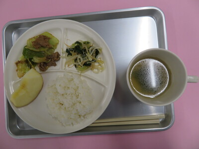Home > 今日の給食 > ご飯 回鍋肉 青梗菜ともやしの甘酢和え わかめスープ りんご