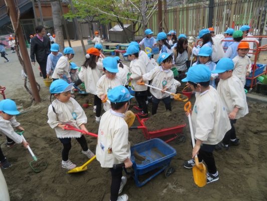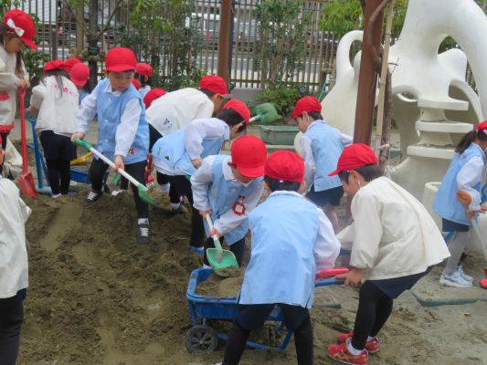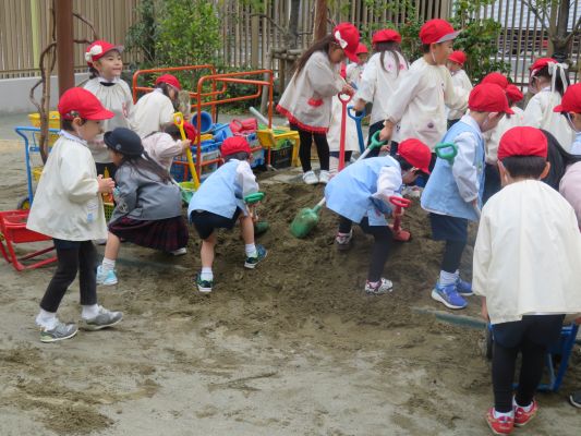 早速、梅組(4歳児)の子どもたちが砂山へ!