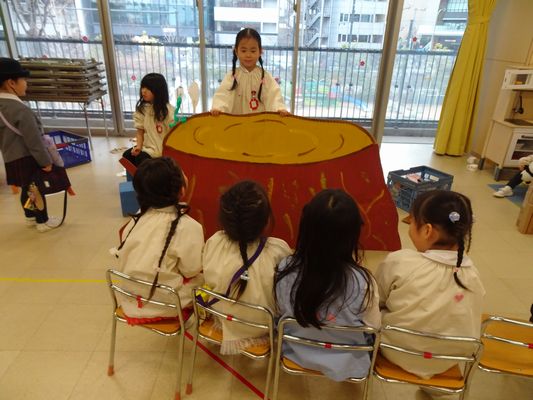 劇遊びの大道具を使って、絵本のお話会をしていまし