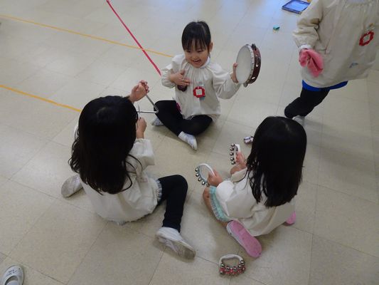表現あそびで梅組は楽器あそびも行ないました。お部