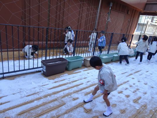ていたので園庭やテラスのガーデンで雪遊びをしまし