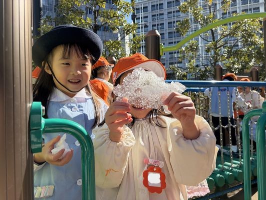 た☃キラキラに光る氷を見て、「先生見て!きれい!」