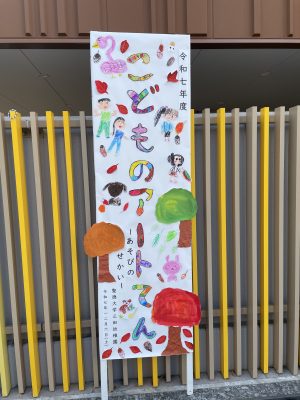 松組は運動会や芋掘り遠足に行った経験を絵の具