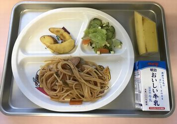 Home > 今日の給食 > ナポリタン ポテト イタリアンサラダ 牛乳 バナナ