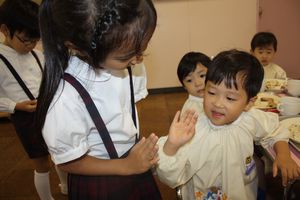 たねぇ♪」「ばいばい(^^)/」とタッチをし