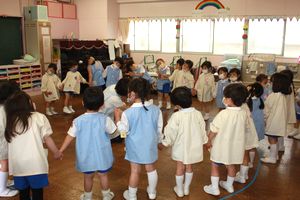 よく聴いて、同じ数のお友達と手を繋いで