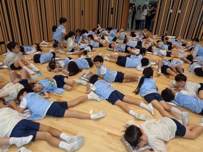 たちは真剣に話を聞き、地震や津波などといった