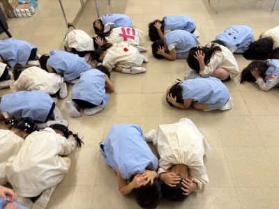 地震発生後津波という想定の防災訓練です。