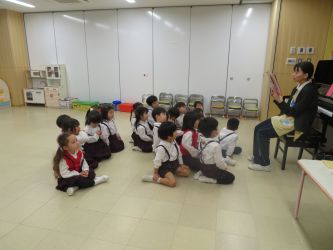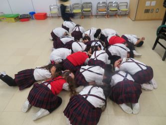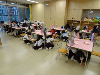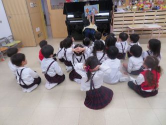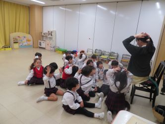 桜組は放送が聞こえると、保育室の真ん中に集まり、