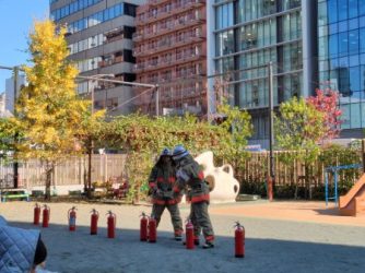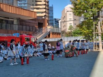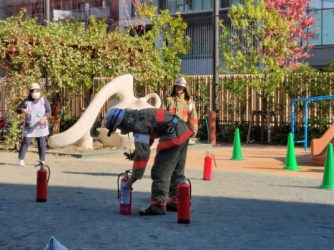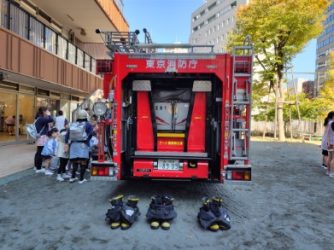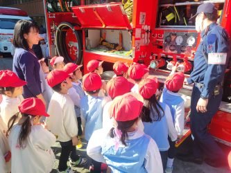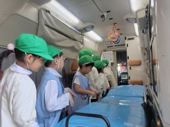 今回は「火災予防運動」も兼ねて、消防署と救急車