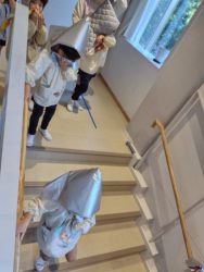 松組(年長組)は職員室側の階段から桜組保育室を通り、