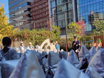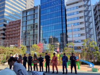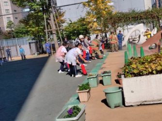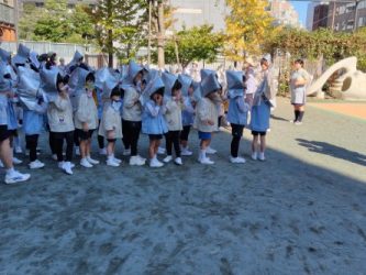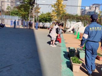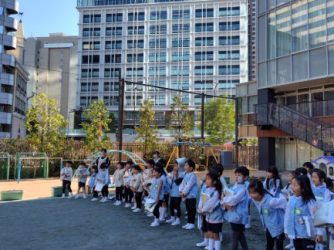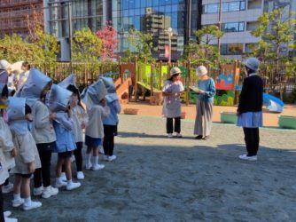 無事、園庭に避難して、園長に各クラスの人数報告を