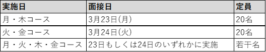 月・火・木・金コース:3月9日(月)もしくは10日(火)に連絡いたします