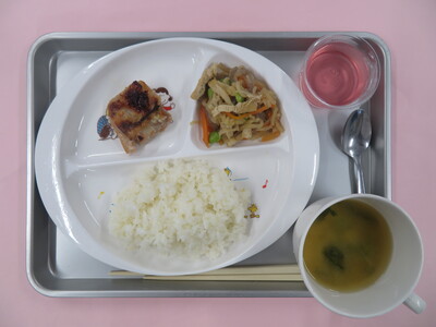 2025.10.17 10月17日(金) 鶏肉の塩こうじ焼き 今日のメニューは、 ☆ご飯 ☆小松菜の味噌汁 ☆鶏肉の塩こうじ焼き ☆切り干し大根の煮物 ☆いちごゼリー です。 ※写真は年中(うめ)組の量になります。