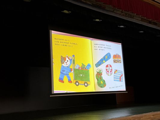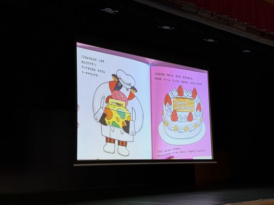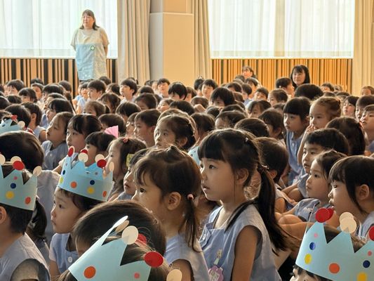 中で誕生会の準備をしていて、最後にみんなで絵本