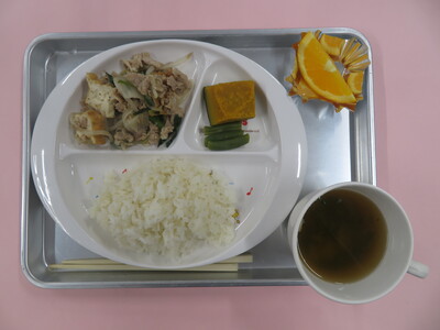 Home > 今日の給食 > 9月22日(月) 豚肉のねぎ塩炒め