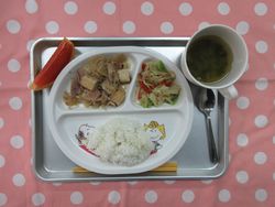 2025.10.27 ごはん ほうれん草の味噌汁 すき焼き風煮 和風ツナサラダ ルビーグレープフルーツ たんぱく質・・・14.8g エネルギー・・・396Kcal ※3歳~5歳児の栄養価を記載しています。2歳児の栄養価は3歳~5歳児の75%の値です。