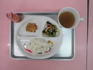 Home > 今日の給食 > ごはん、鶏肉のカレーちゃっぷ、ちくわのサラダ、とうがんスープ、ヤクルト