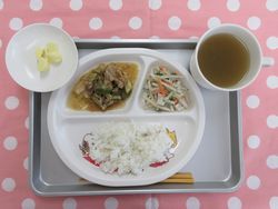 Home > 今日の給食 > ご飯 回鍋肉 ごぼうサラダ わかめスープ キャンディチーズ