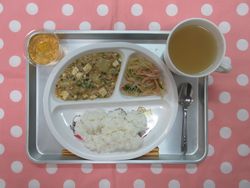 Home > 今日の給食 > ご飯 麻婆白菜 春雨サラダ 中華風コーンスープ オレンジゼリー