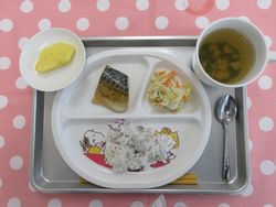 Home > 今日の給食 > ゆかりご飯 サバのみそ煮 そうめんサラダ 筍のすまし汁 パイナップル