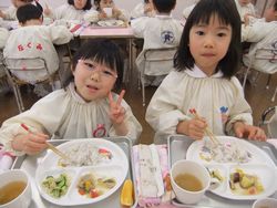 Home > 今日の給食 > ゆかりご飯 鶏肉とサツマイモの炒め物 かにかまサラダ 大根のみそ汁 オレンジ