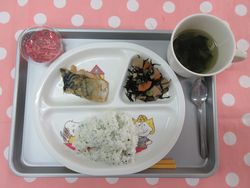2025.12.10 わかめご飯 ほうれん草のすまし汁 さばのねぎみそ焼き 高野豆腐とひじきの煮物 いちごゼリー たんぱく質・・・16.0g エネルギー・・・377Kcal ※3歳~5歳児の栄養価を記載しています。2歳児の栄養価は3歳~5歳児の75%の値です。