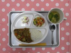 Home > 今日の給食 > ポークカレー チーズ コールスローサラダ レタスのスープ