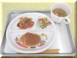 Home > 今日の給食 > ロールパン ミックスビーンズのトマト煮 イタリアンサラダ ウィンナーのスープ
